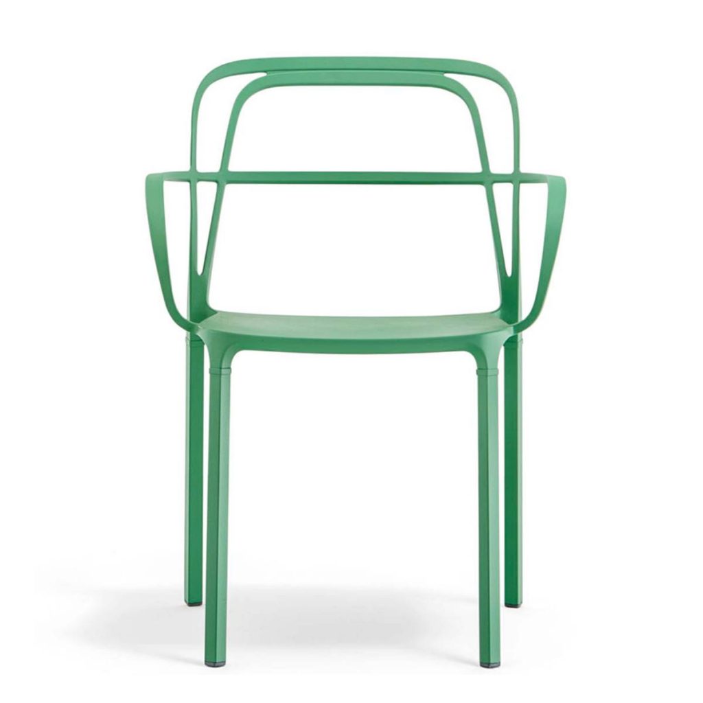 La sedia Babila unisce la funzionalità della scocca in polipropilene a gambe a slitta in tubo d’acciaio verniciato o cromato.