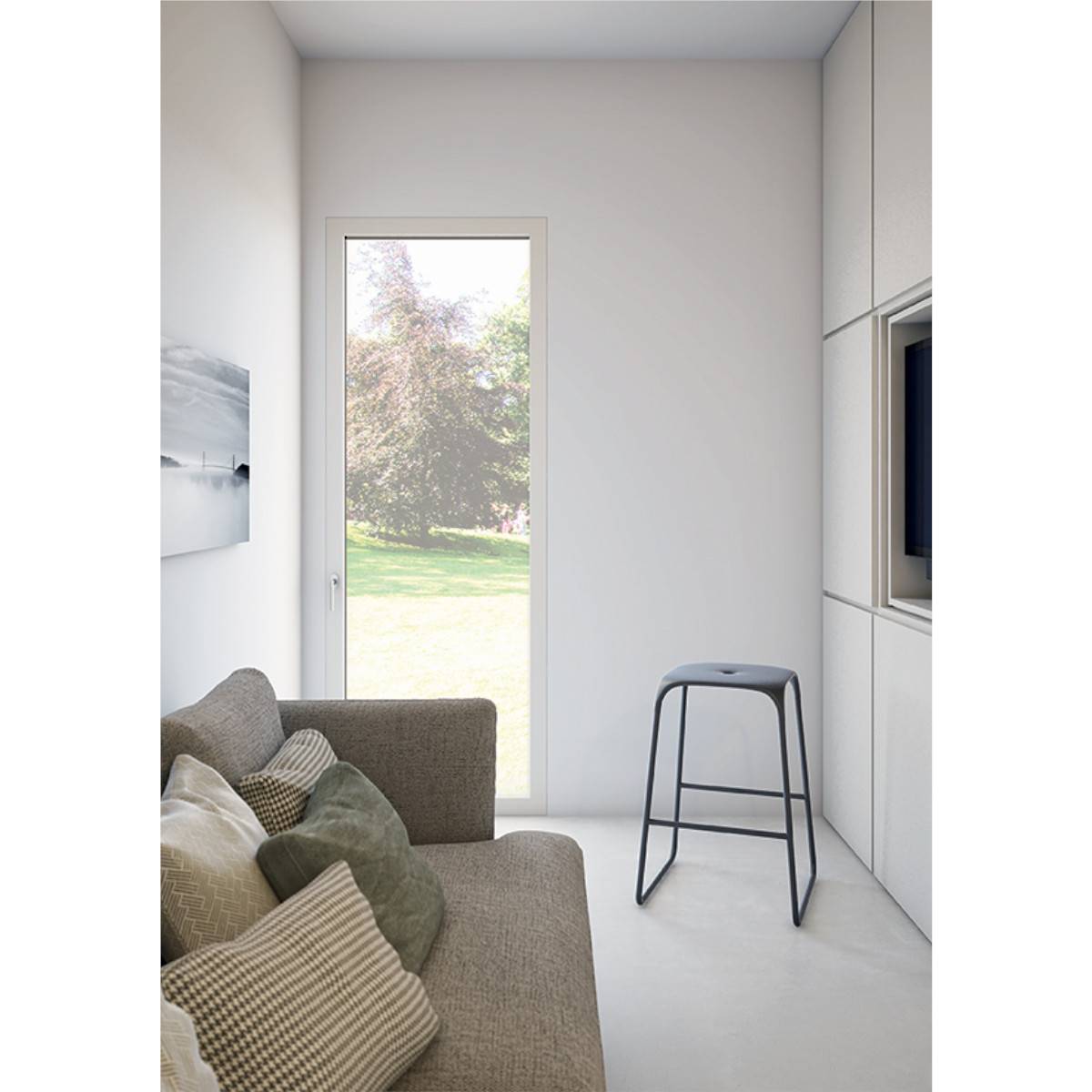 Sgabello con seduta in polipropilene caricato fibra di vetro. Telaio in acciaio cromato o verniciato. Disponibile in due altezze: cucina e bar.