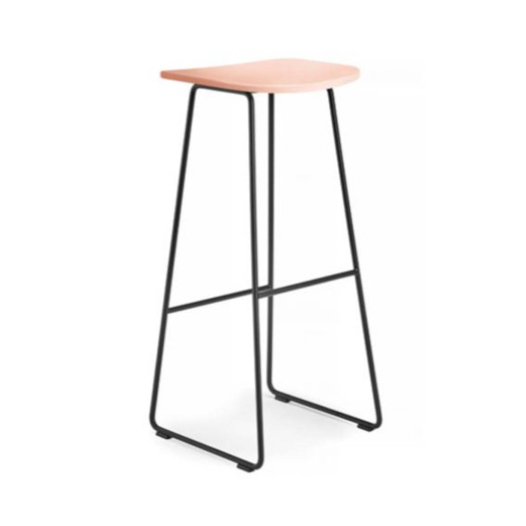 Sgabello realizzato interamente in polipropilene stampato con gas air moulding, dalla forma innovativa per il sedile rettangolare con i profili smussati, capace di garantire una seduta ergonomica pur con un sellino dalla profondità assai contenuta. Impilabile. Altezza 760 mm o 650 mm.