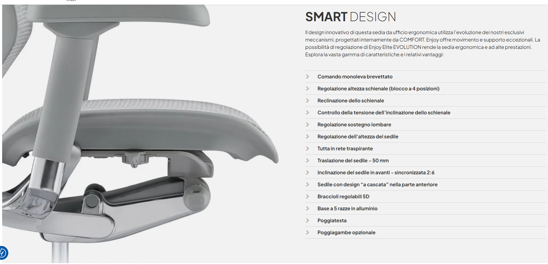 La sedia da ufficio, ora ridisegnata, Enjoy Elite EVOLUTION combina la seduta ergonomica di alta gamma con un adeguato rapporto qualità-prezzo.