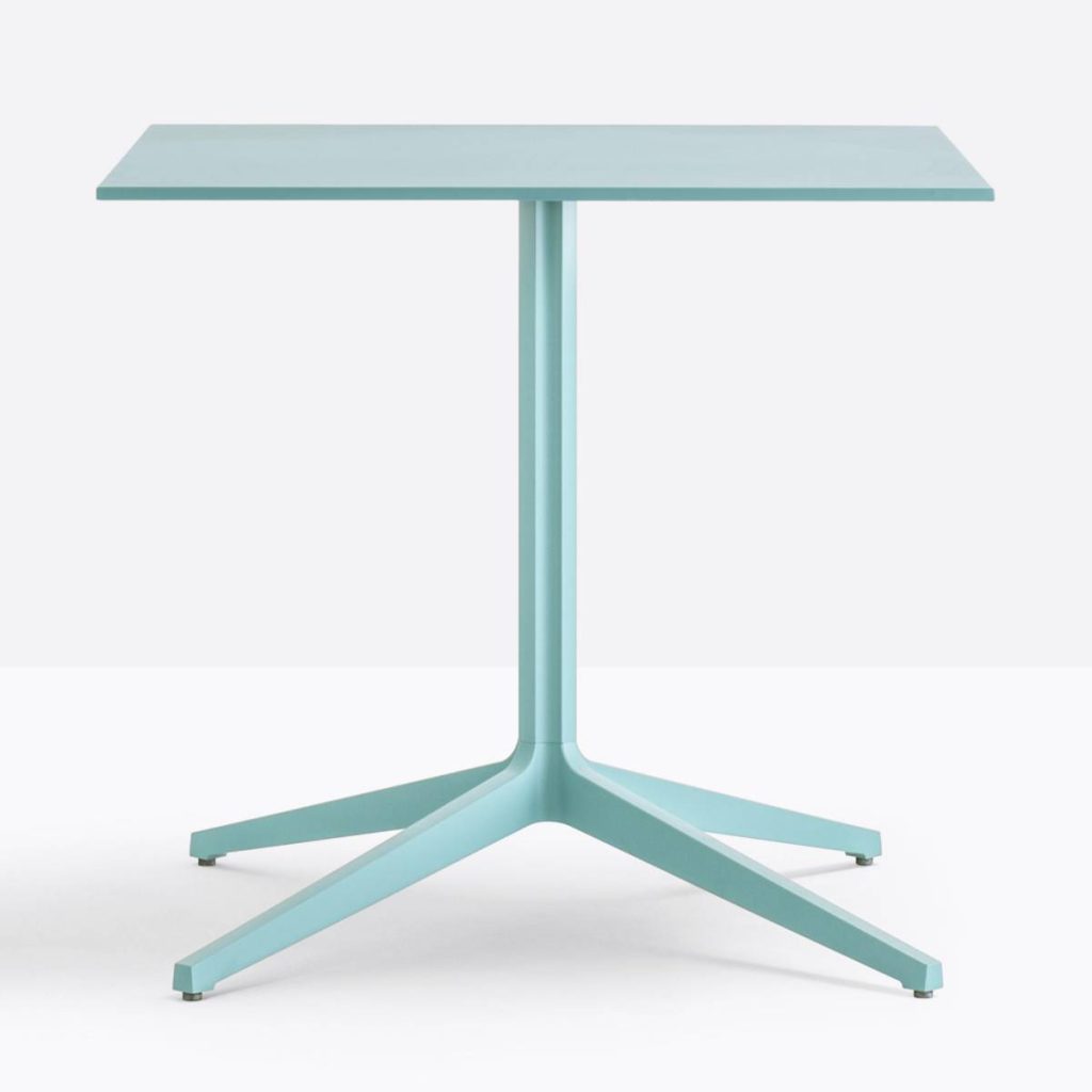 Tavolo con struttura in acciaio verniciato, cromato o satinato. Ripiano in laminato o stratificato